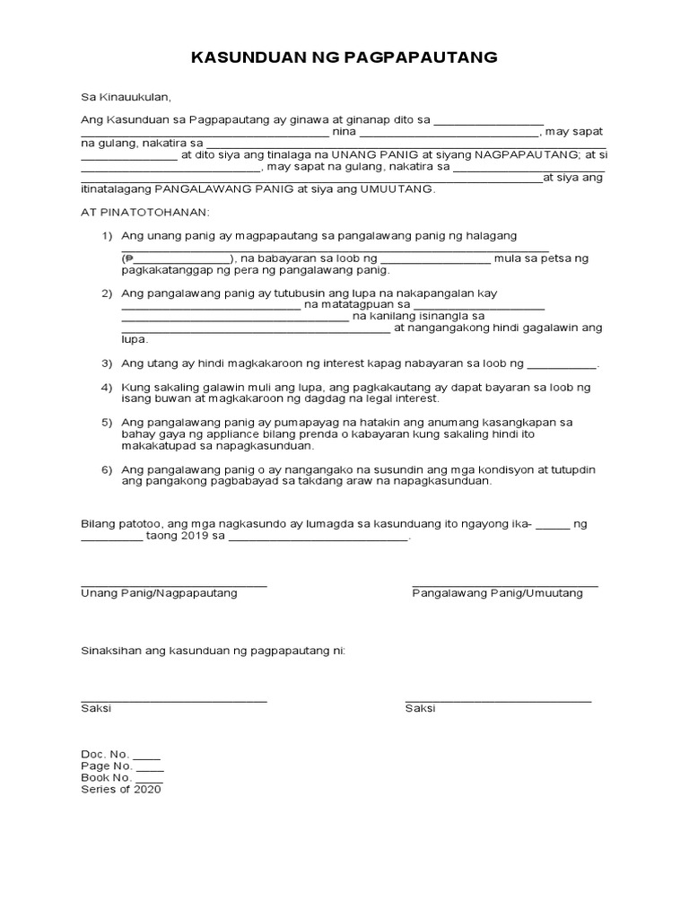 Right here, we have countless book halimbawa ng kasunduan sa pagpapautang ng pera and collections to check out. Ang kasunduang ito ay isinasagawa ng mga sumusunod: Ang kasunduan sa washington ng 1900 ay nilagdaan noong nobyembre 7, 1900, at nagkaroon ng bisa noong marso 23, 1901, nang ang pagpapatibay ay nagpalitan. Contextual translation of kasunduan kasulatan sa pagpapautang sample into english. _ 14 bayad sa pagwawakas ng trabaho!kontrata: